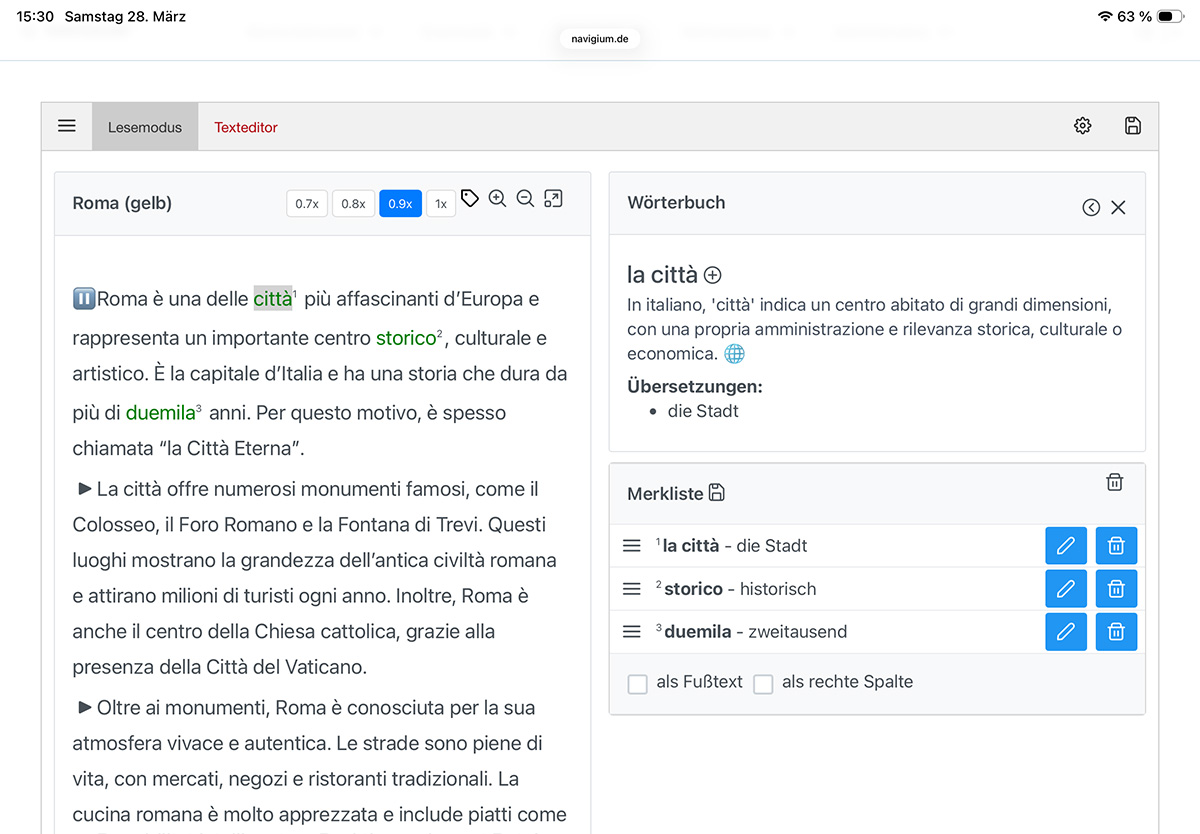 - Vertonung der Vokabeln zum Lernen der Aussprache